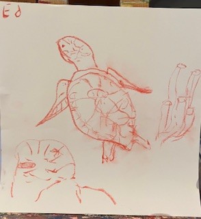 Wat mij enorm opviel is het enorme lef dat de (schoon)broers en – zussen gebruikten bij het schilderen. Sommige voorbeelden waren echt spectaculair en zeker ook niet simpel om te schilderen. Maar dat zal ik nooit zeggen – ten slotte is schilderen vooral goed kijken en kun je in principe álles naschilderen. Onderaan het verhaal laat ik zien wat het resultaat was van de workshop. Maar eerst laat ik de schetsen zien die ze gemaakt hebben aan de hand van hun foto’s. En dan bergrijp je vast wat voor een uitdaging deze mensen zich zelf gaven.