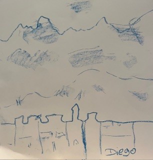 Diego had zijn familie gevraagd om mooie beelden te verzamelen. Iedereen had foto’s gemaakt – variërend van landschappen, gezichten tot kunst. En vlak voor de workshop vertelde hij waarom hij de opdracht had gegeven om mooie beelden te verzamelen. Best spannend voor iedereen, zelfs al heb je eerder geschilderd.